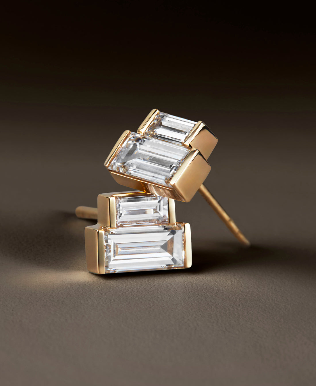 "Nothing is more sophisticated and elegant than a baguette diamond. Stacked, they become distinctly modern."