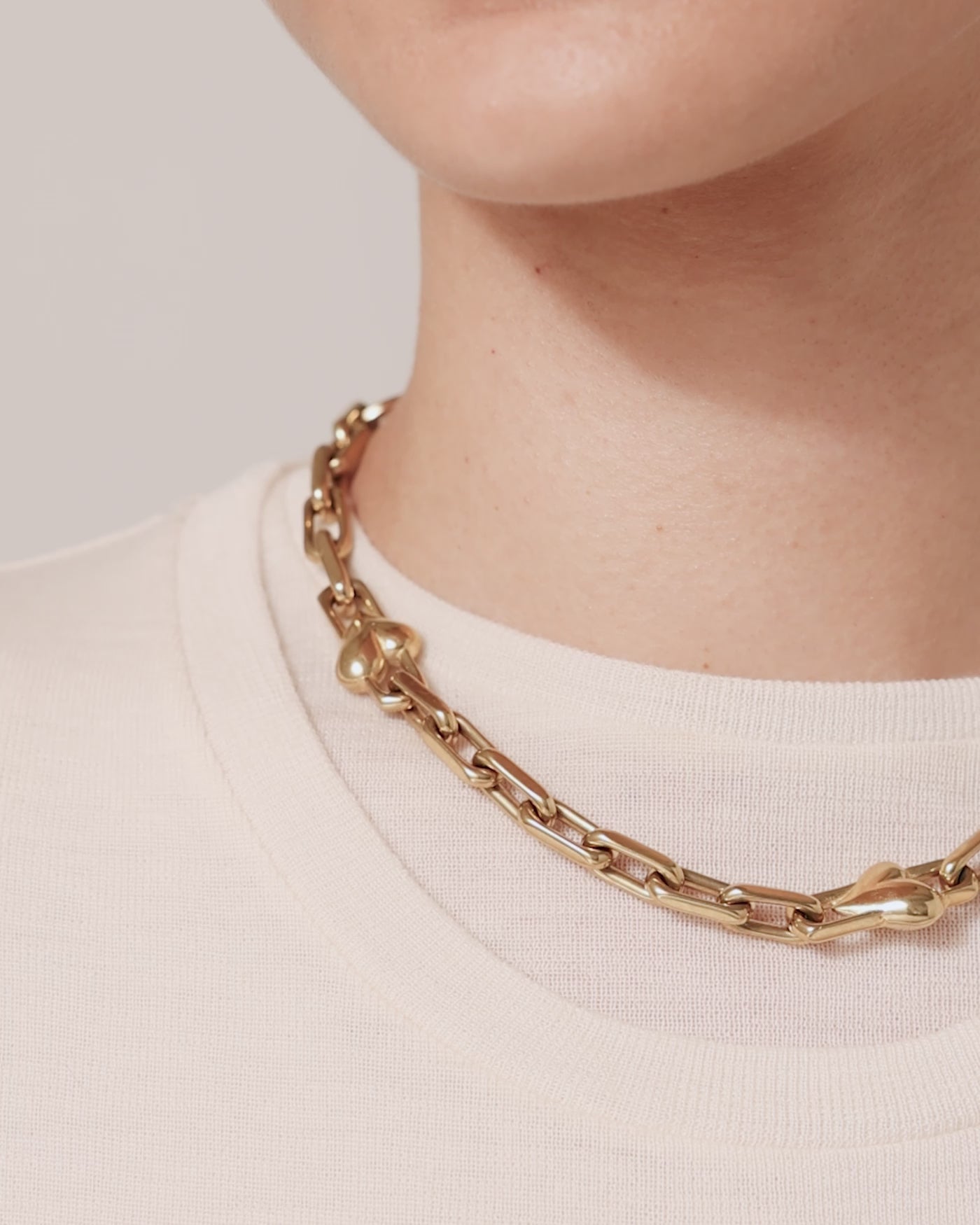 Crisp, faceted links are punctuated with small voluminous hearts. Wear the exaggerated S-clasp at the front for an alternate look. Finished in high-polish gold.