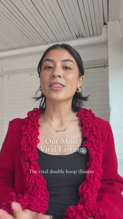 Two-toning done for you, on our most talked-about earrings. Dramatic and voluminous, this custom design creates the illusion of two chunky hoops stacked together, with a flat disc backing for additional support. Finished in high-polish silver and 14k gold.