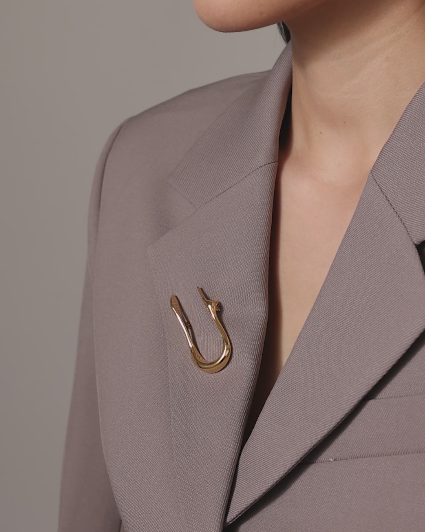 A brooch featuring the elongated profile of the egret bird. Outfitted with a pin on a hinge. Wear tips: Jenny recommends poking the brooch through a button hole, on the collar of your shirts, over the chest of a knit sweater, into your hair or on a bag. Finished in high-polish gold.