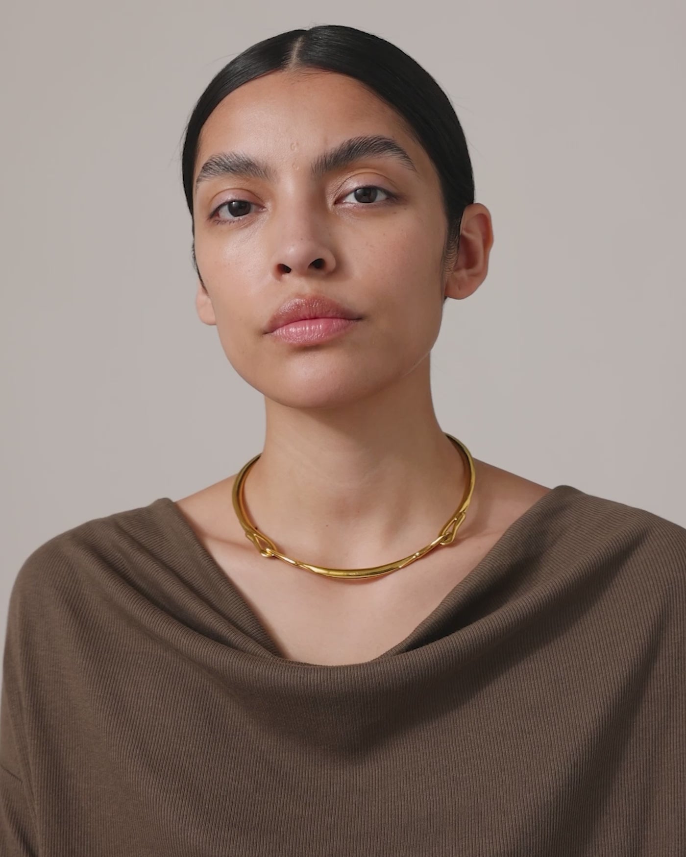 The elongated beauty of an egret profile is captured in this dynamic collar with subtle movement. Finished in high-polish gold.