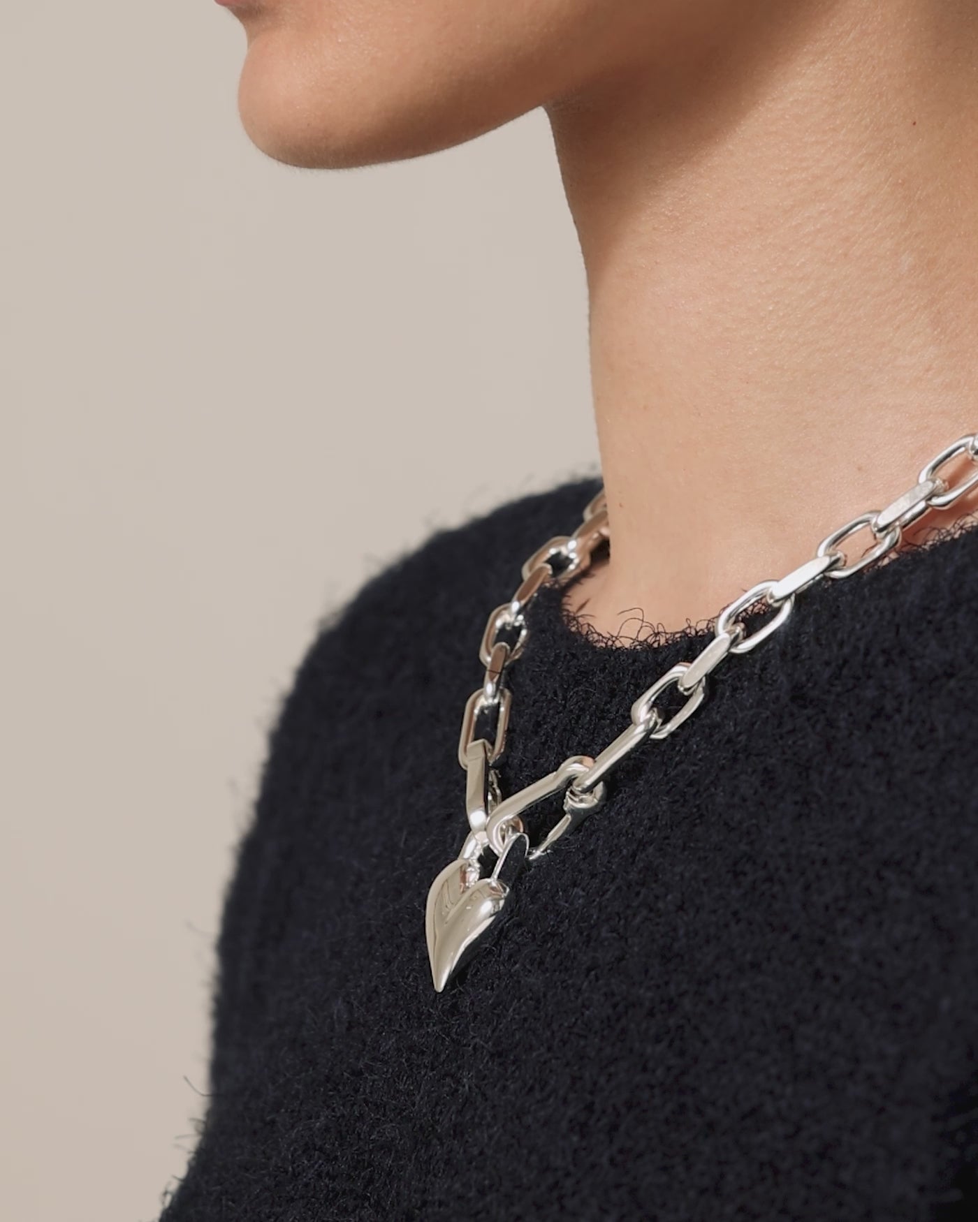 A removable heart is hooked onto crisp, faceted links. The chain can be split in half and used as a bag charm or keychain. Finished in high-polish silver.
