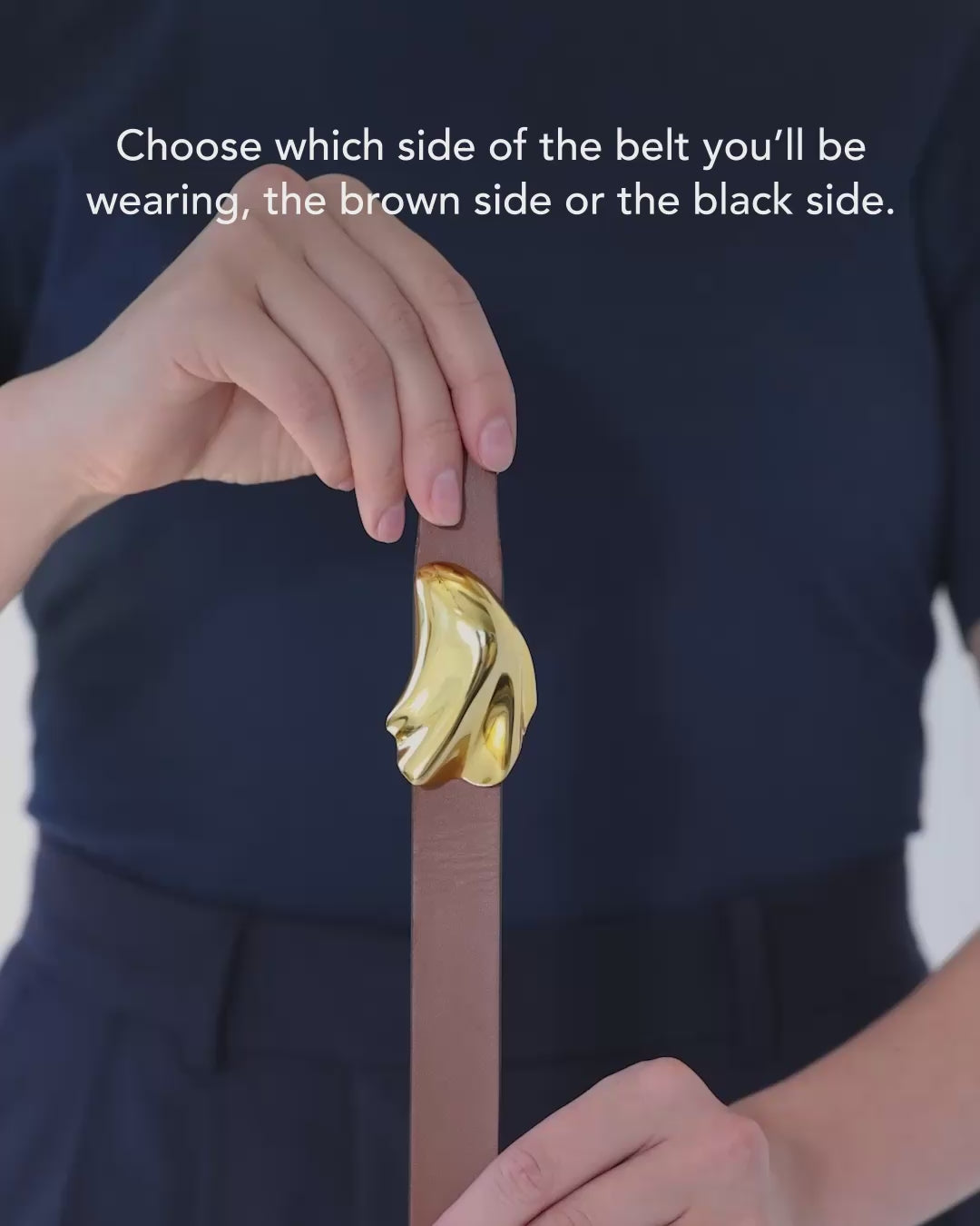 By purchasing this belt base, you’ll have the option to wear it in chestnut brown or turn it around to wear it in black. It serves as the foundation for even more belt combinations as we release additional buckles down the line.