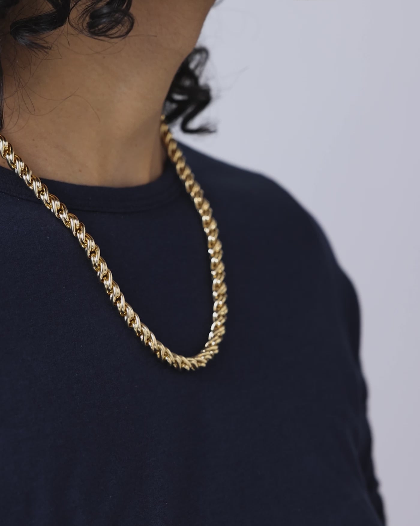 At a glance, this braided chain looks like curls of gold. It's the perfect anchor for your neck stack—or, wear it solo for a "new nonna" moment. Finished in high-polish gold.