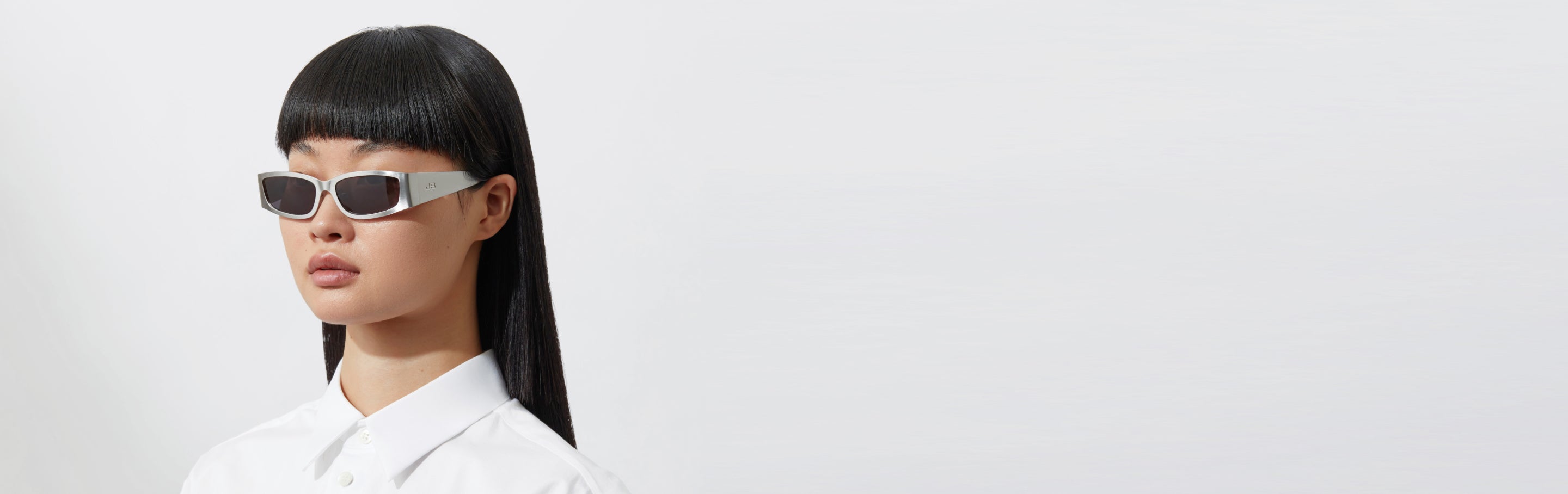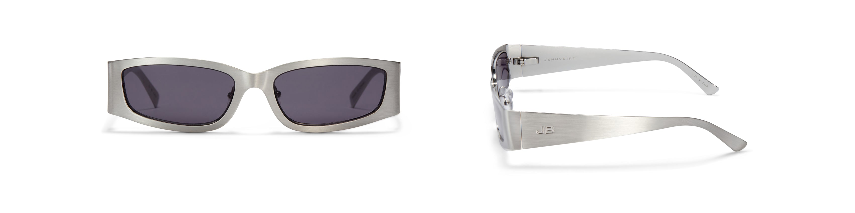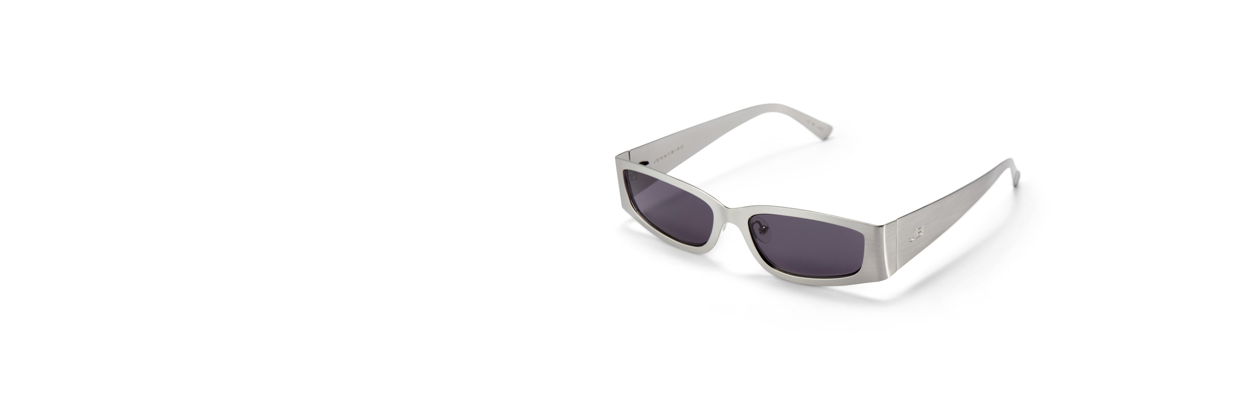 A '90s-inspired rectangular shape with a modern, flat profile. This silver full-metal frame is outfitted with spring hinges for a comfortable fit, and is finished with a debossed logo resting on the temples.